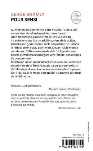 Au moment où commence cette histoire, l’auteur voit se terminer simultanément deux aventures, l’une amoureuse, l’autre littéraire. Rivka, avec qui il a entretenu une liaison adultère, vient de le quitter. Quant à son grand roman sur la conjuration de Catilina, la rédaction en est au point mort. Devant lui, le monde se referme. Cette sensation de vide l’oblige à tourner pour la première fois son regard vers l’arrière, dans l’espoir de comprendre. Méditation sur un amour défunt, Pour Sensi nous emmène des oliviers de la Tunisie natale jusqu’aux contreforts de l’Himalaya et aux cérémonies vaudoues des Tropiques. Car il faut saisir la magie pour goûter au pouvoir salvateur de la littérature.
