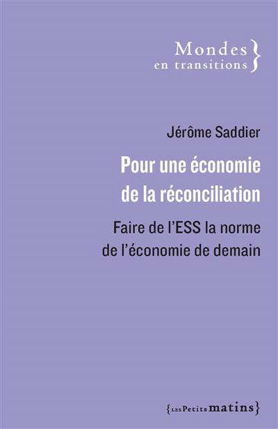 Il est temps que l'ESS joue pleinement son rôle en tant qu'économie de la réconciliation, clé d'une société plus apaisée : réconciliation entre des enjeux, des contraintes, des aspirations et des intérêts divers. Elle doit pour cela prendre conscience de sa capacité d'entraînement et de sa force. Ses acteurs trouveront dans cet ouvrage des raisons de faire des choses plus grandes qu'eux-mêmes.