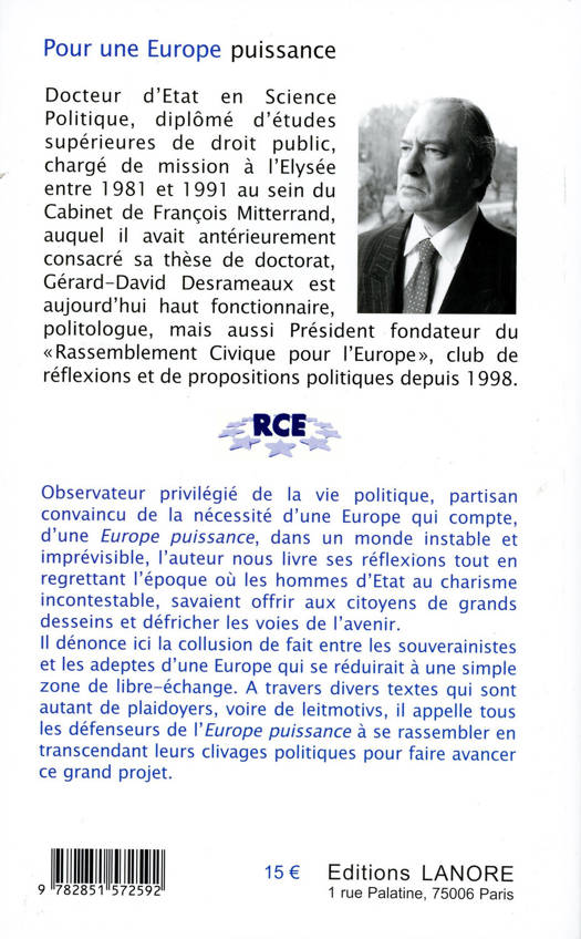 Observateur privilégié de la vie politique, partisan convaincu de la nécessité d'une Europe qui compte, d'une Europe puissance, dans un monde instable et imprévisible, l'auteur nous livre ses réflexions tout en regrettant l'époque où les hommes d'Etat au charisme incontestable, savaient offrir aux citoyens de grands desseins et défricher les voies de l'avenir. Il dénonce ici la collusion de fait entre les souverainistes et les adeptes d'une Europe qui se réduirait à une simple zone de libre-échange. A travers divers textes qui sont autant de plaidoyers, voire de leitmotivs, il appelle tous les défenseurs de l'Europe puissance à se rassembler en transcendant leurs clivages politiques pour faire avancer ce grand projet.