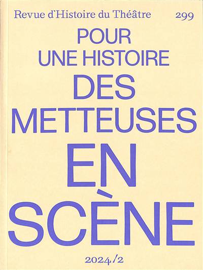 Le numéro 299 de la Revue d'Histoire du Théâtre, intitulé « Pour une histoire des metteuses en scène » choisit d'ouvrir largement le champ d'étude et d'explorer quelle a été la place des femmes dans la mise en scène en France du XVIIe siècle au début du XXe siècle. De nombreuses personnalités apparaissent avec des parcours et des oeuvres variées. Des mouvements et des tendances se dessinent et posent les premiers Jalons d'une histoire essentielle, enfin visible, première étape vers une histoire mixte au plein sens du terme.