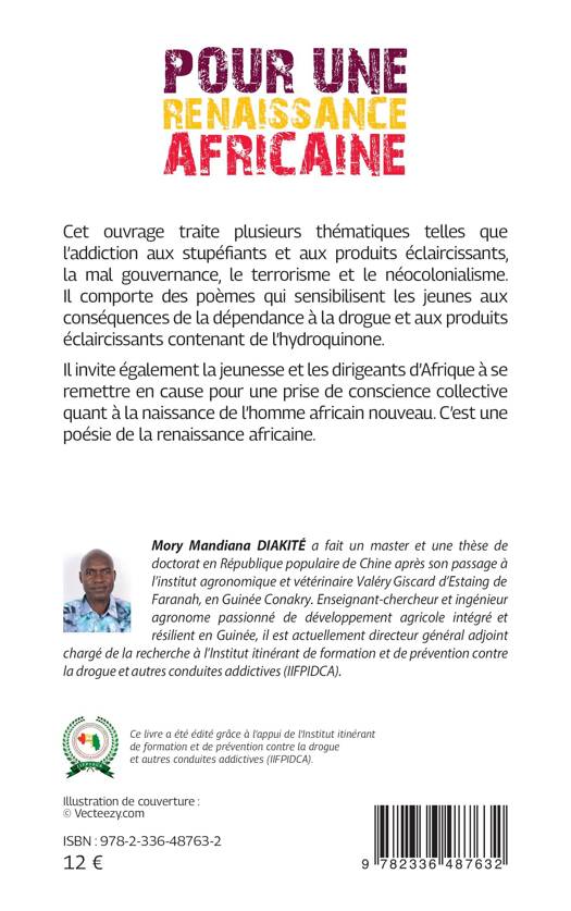 Cet ouvrage traite plusieurs thématiques telles que l’addiction aux stupéfiants et aux produits éclaircissants, la mal gouvernance, le terrorisme et le néocolonialisme. Il comporte des poèmes qui sensibilisent les jeunes aux conséquences de la dépendance à la drogue et aux produits éclaircissants contenant de l’hydroquinone. Il invite également la jeunesse et les dirigeants d’Afrique à se remettre en cause pour une prise de conscience collective quant à la naissance de l’homme africain nouveau. C’est une poésie de la renaissance africaine.