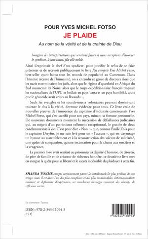Ce livre étale de nouvelles preuves de l'innocence du capitaine d'industrie camerounais Yves Michel Fotso, qui s'est sacrifié pour son pays, ruinant sa fortune personnelle. De nouveaux documents montrent la succession de défaillances judiciaires qui au mépris d'un patriotisme tellement exceptionnel, le gratifie de deux condamnations à vie. C'est pour dire "non" que je me suis levé pour un "j'accuse" qui est davantage un hymne au rassemblement et à la construction des valeurs de solidarité, qu'une incantation pour la chasse aux sorcières et la vengeance.