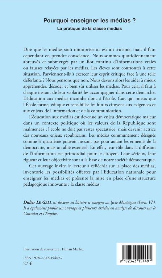 L'éducation aux médias est devenue un enjeu démocratique majeur dans un contexte politique où les valeurs de la République sont malmenées ; l'école ne doit pas rester spectatrice, mais devenir actrice des nouveaux enjeux républicains. Cet ouvrage invite le lecteur à réfléchir sur la place des médias, inventorie les possibilités offertes par l'Education nationale pour enseigner les médias et présente la mise en place d'une structure pédagogique innovante : la classe médias.