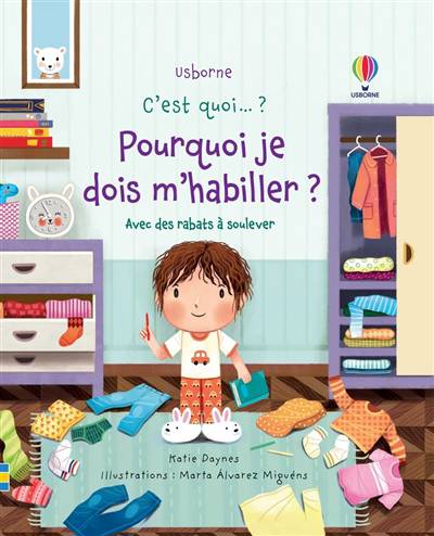 De nombreux rabats à soulever, des données convaincantes et toute une gamme de tenues irrésistibles persuaderont les tout-petits que finalement c'est drôlement bien de s'habiller. Avec des tenues pour faire du sport, des costumes pour jouer aux super-héros, un ciré et des bottes pour sauter dans les flaques d'eau... Il n'y a plus aucune raison de rester en pyjama !