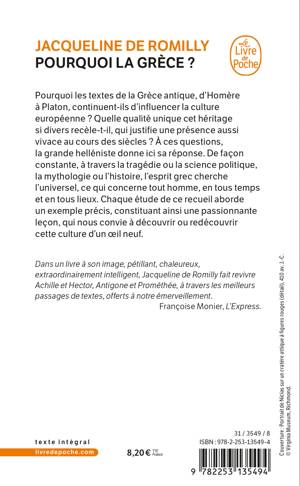Dans un livre à son image, pétillant, chaleureux, extraordinairement intelligent, Jacqueline de Romilly fait revivre Achille et Hector, Antigone et Prométhée, à travers les meilleurs passages de textes, offerts à notre émerveillement. Françoise Monier, L’Express.