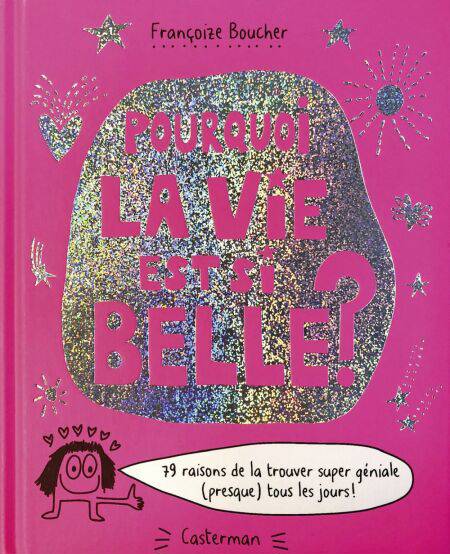 Ce joli petit livre offre 79 réponses à la grande question que pose le titre. La philosophie de Françoize Boucher, c’est qu’il y a quelque chose de magique dans la vie. Quand on y pense, c’est vrai que c’est incroyable d’être vivant, d’aimer les gens qui nous entourent, d’admirer la beauté de la nature, de pouvoir voyager à la rencontre d’autres cultures, de croire en ses rêves et en soi-même… L’humour est toujours au rendez-vous avec un petit Mr Rabat-Joie qui tente au fil des pages de nous saper le moral… sans succès ! Des maximes joyeuses, des activités rigolotes, des blagues détonantes pour sourire tout le temps !