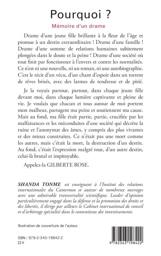 Drame d’une jeune fille brillante. Drame d’une famille. Drame d’une somme de relations humaines subitement plongées dans le doute et la peine. Drame d’une société où tout finit par fonctionner à l’envers et contre les normalités. C’est le récit d’un vécu, d’un chant d’espoir dans un torrent de rêves brisés, avec des larmes de tendresse et de pitié. Je la voyais partout, dans chaque jeune fille devant moi. Je voulais que chacun et tous autour de moi portent mon malheur, partagent ma peine et soutiennent ma cause.