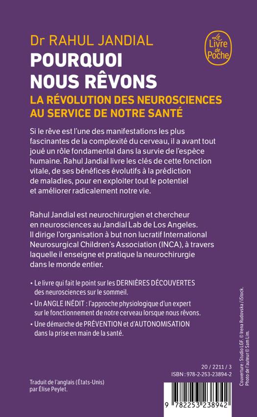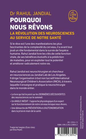Si le rêve est l’une des manifestations les plus fascinantes de la complexité du cerveau, il a pourtant joué un rôle fondamental dans la survie de l’espèce humaine. De ses bénéfices évolutifs à la prédiction de maladies qu’il permet, Randul Jandial livre les clés de cette fonction vitale pour en exploiter tout le potentiel et améliorer radicalement notre vie. Rahul Jandial est neurochirurgien et chercheur en neurosciences au Jandial Lab de Los Angeles. À travers son organisation à but non lucratif International Neurosurgical Children’s Association (INCA), il enseigne et pratique la neurochirurgie dans le monde entier.