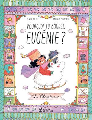 Eugénie boude. Elle boude parce qu’elle a dit à papa ‘Je veux être chevalier !’ et que papa lui a répondu que ce n’était pas possible. Eugénie s’insurge : c’est parce qu’elle est une fille, c’est ça ? parce qu’on dit pas LA chevalier ? Eh bien voilà, à partir d’aujourd’hui, elle, Eugénie, cheffe des boudeuses, décide qu’on peut dire LA Chevalier et s’il y en a qui sont pas contents, qu’ils viennent la voir et elle les enfermera dans un cachot, ou leur fera manger la litière de Touffu, son chat ! Et voilà Eugénie partie dans une grande révolution…