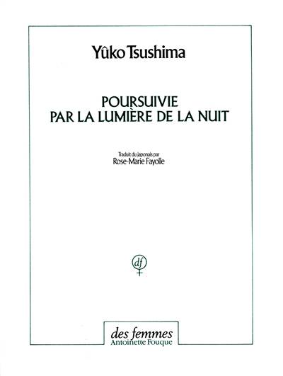En mars 1985, Yûko Tsushima est frappée par la mort brutale de son fils âgé de huit ans. Elle écrit Poursuivie par la lumière de la nuit après un an de silence. C'est en retournant à un manuscrit du XIe siècle, « Yoru no nezame », écrit sans doute par l'auteure du Journal de Sarashina (PUF, traduction de René Sieffert), qu'elle va rappeler à la vie son propre récit qu'elle croyait mort. La narratrice s'adresse, sous forme de lettres, à Tamako, l'héroïne de ce classique, avec qui elle se sent dans une proximité douloureuse de femme blessée. Avec la force que donne la conscience du malheur, elle essaie de reconstruire le puzzle de son existence singulière où résonne l'écho lointain des passés familiaux. Simultanément, elle se livre à un travail de restauration du texte initial dont il ne reste plus que des fragments et elle se met à le reconstituer en imaginant l'histoire de Tamako. Ce double texte a reçu le prix littéraire du journal Yomiuri, en 1987, quelques mois après sa publication.