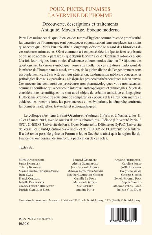 Cet ouvrage confronte données matérielles, textuelles et iconographiques pour répondre à un certain nombre de questions concernant le rapport de l'homme à ses parasites au cours de l'histoire. Où et comment les a-t-on pensés, décrits, répertoriés et représentés ? Comment a-t-on expliqué leur origine, leurs modes d'existence et leurs modes d'action ? Quelle est la dimension symbolique voir spirituelle de ces créatures, à la fois sujets de considérations scientifiques et médicales et objets de création langagière et artistique.