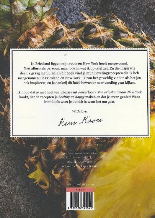 Rens Kroes biedt opnieuw een verzameling recepten voor een happy & healthy lifestyle! Haar jeugd in Friesland legde de basis voor Rens’ kennis van en interesse in gezonde voeding. Nog steeds vindt zij daar volop inspiratie voor nieuwe recepten. New York is de stad die ten grondslag lag aan Rens’ wens om voedingskundige te willen worden. Het is de stad die haar eindeloos inspireert. De stad die bovendien bakermat is van vele gezondheidstrends. Het contrast tussen stad en platteland komt tot uitdrukking in Rens’ heerlijke en toegankelijke recepten en in de fraaie food- en lifestylefotografie.