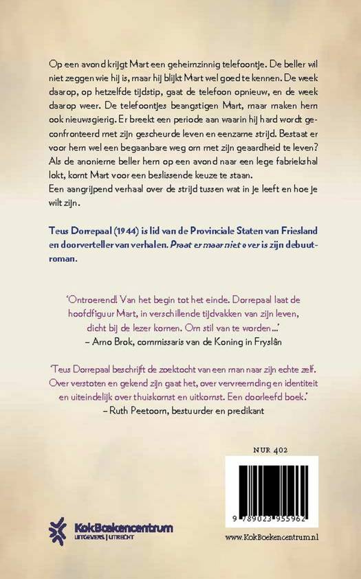 Praat er maar niet over van Teus Dorrepaal is een roman over het leven van de homoseksuele christenjongen Mart van Buren.