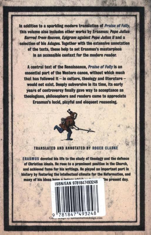 The goddess Folly gives a speech, praising herself and explaining how much humanity benefits from her services, from politicians to philosophers, aristocrats, schoolteachers, poets, lawyers, theologians, monarchs and the clergy. At the same time, her discourse provides a satire of Erasmus's world, poking fun at false pedantry and the aberrations of Christianity. Woven throughout her monologue, a thread of irony calls into question the goddess's own words, in which ambiguities, allusions and interpretations collide in a way that makes Praise of Folly enduringly fascinating.