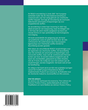 Niet alleen de verschillende REACH-verplichtingen over de registratie van chemische stoffen, de beoordeling door de overheid, de autorisatie en beperkingen voor risicovolle stoffen, maar ook de communicatie hierover komen aan bod. Ze worden telkens toegelicht aan de hand van voorbeelden, gebaseerd op reële situaties. Ook de IT-tools die nodig zijn voor het voldoen aan de verplichtingen, worden toegelicht. Het boek sluit af met de handhaving.