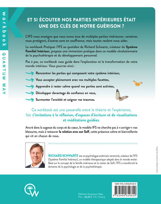 Et si écouter nos parties intérieures était une des clés de notre guérison ? L'IFS nous enseigne que nous avons tous de multiples parties intérieures : certaines nous protègent, d'autres sont en souffrance, mais toutes veulent nous aider. Pas à pas, ce workbook vous guide dans l'exploration et la transformation de votre monde intérieur. Vous pourrez ainsi : rencontrer les parties qui composent votre système intérieur ; vous accepter pleinement avec vos multiples facettes ; apprendre à rester calme quand vos parties sont activées ; développer davantage de confiance en vous ; surmonter l'anxiété et soigner vos traumas. Ce workbook est une passerelle entre la théorie et l'expérience, fait d'invitations à la réflexion, d'espaces d'écriture et de visualisations et méditations guidées. Ancré dans la sagesse du corps et du coeur, le modèle IFS ne cherche pas à « corriger » nos blessures, mais à restaurer la relation avec son Self, cette présence calme et bienveillante en chacun de nous.