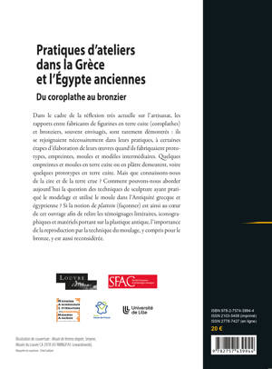 Dans le cadre de la réflexion très actuelle sur l’artisanat, les rapports entre fabricants de figurines en terre cuite (coroplathes) et bronziers, souvent envisagés, sont rarement démontrés : ils se rejoignaient nécessairement dans leurs pratiques, à certaines étapes d’élaboration de leurs oeuvres quand ils fabriquaient prototypes, empreintes, moules et modèles intermédiaires. Quelques empreintes et moules en terre cuite ou en plâtre demeurent, voire quelques prototypes en terre cuite. Mais que connaissons-nous de la cire et de la terre crue ? Comment pouvons-nous aborder aujourd’hui la question des techniques de sculpture ayant pratiqué le modelage et utilisé le moule dans l’Antiquité grecque et égyptienne ? Si la notion de plattein (façonner) est ainsi au coeur de cet ouvrage afin de relire les témoignages littéraires, iconographiques et matériels portant sur la plastique antique, l’importance de la reproduction par la technique du moulage, y compris pour le bronze, y est aussi reconsidérée.