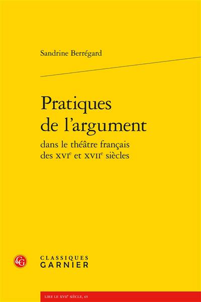D'ordinaire négligé, l'argument théâtral s'avère en réalité jouer un rôle décisif dans le processus de lecture sinon dans le processus d'écriture relatif aux pièces auxquelles il est joint. Qu'il revête la forme d'un récit liminaire, figurant parmi les autres paratextes, d'une suite de résumés respectivement situés en amont des actes, ou encore d'un descriptif du spectacle lui-même, il sert de propédeutique au lecteur voire au spectateur. Il est également susceptible d'avoir constitué pour l'auteur une esquisse préparatoire, comme l'indique le terme de dessein par lequel il est parfois désigné. Issu d'éditions anciennes de comédies ou de tragédies antiques, le procédé renaît, en se renouvelant, à l'époque humaniste puis durant la période classique.