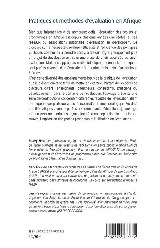 L'évaluation des projets en Afrique est depuis plusieurs années une réalité. Des réseaux ou associations nationales d'évaluation se développent. Le discours sur la nécessité d'évaluer l'efficacité et l'efficience des politiques publiques prend corps. Mais les approches méthodologiques et les pratiques sont diverses d'un évaluateur à l'autre et d'un contexte à l'autre. C'est cette diversité des enseignements issus de la pratique de l'évaluation que cet ouvrage présente, dans une série de contributions traitant des différentes facettes de l'évaluation allant des expériences pratiques à des réflexions d'ordre méthodologique.