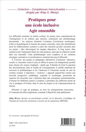 L'éducation "inclusive" apparaît aujourd'hui comme une nouvelle perspective synthétique, originale et systémique, permettant de respecter les diversités sans s'enfermer dans une conception communautariste, d'amener les différents acteurs à coopérer, à permettre aux différents points de vue et pratiques d'évoluer, dans le sens du respect et de l'épanouissement de chacun. Présenter ce type de pratiques, en tirer les enseignements nécessaires à l'extension de telles inspirations, constitue l'objectif de cette publication.