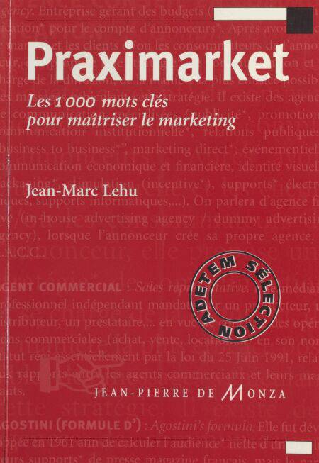 Le marketing évolue, s'enrichit, s'universalise. Un nombre croissant de professionnels, d'étudiants et de chercheurs de tous horizons, pratique quotidiennement cette discipline. Son évolution constante rendait nécessaire la constitution d'une véritable « boîte à outils » contenant l'ensemble des termes, notions et concepts du marketing. Praximarket rassemble les 1 000 mots-clés permettant de maîtriser le marketing. Il recouvre aussi bien les domaines de la recherche, des études ou du marketing stratégique, que les activités périphériques telles que la production, la distribution, la vente ou la communication. Chaque mot est accompagné de sa traduction anglaise, et d'une définition claire, complétée - si nécessaire - par des schémas, des graphiques, et des citations de spécialistes reconnus sur le sujet. Ces définitions renvoient à d'autres termes susceptibles de les enrichir. Deux index - français/anglais et anglais/français - facilitent l'accès aux différents termes, tandis qu'une bibliographie de plus de 2 500 titres classés par genre, permet à chacun d'approfondir ses connaissances. Praximarket a été sélectionné par l'ADETEM, il peut ainsi prétendre à devenir une référence dans son domaine.
