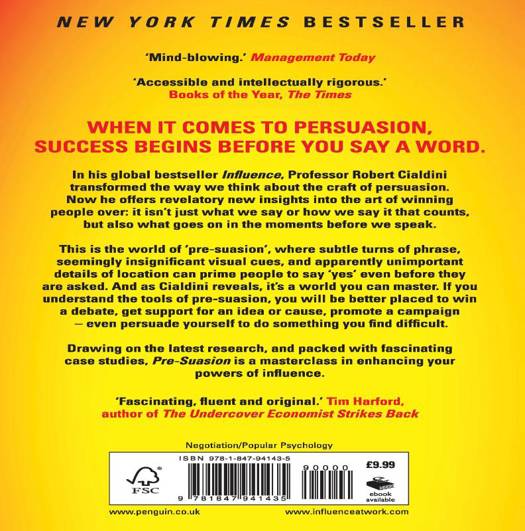 Intends to transforms the way we think about the craft of persuasion. Drawing on research, and packed with case studies, this book offers new insights into the art of winning people over: it isn't just what we say or how we say it that counts, but also what goes on in the moments before we speak.