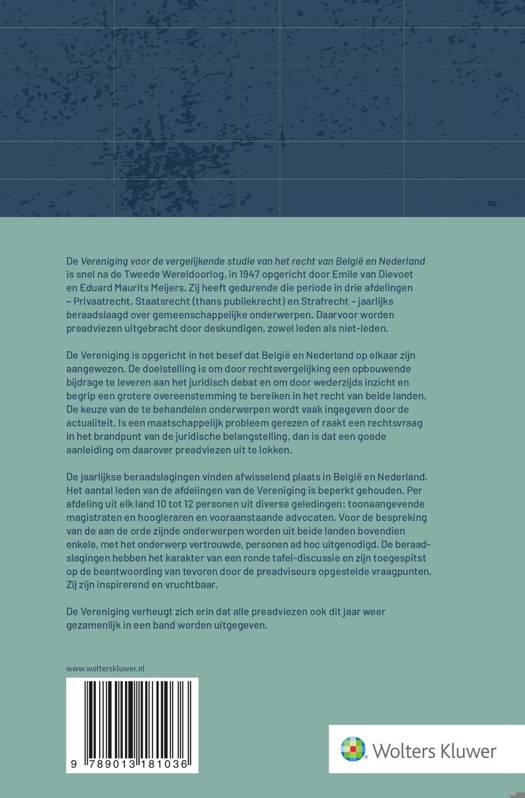 Jaarlijks presenteert de Vereniging voor de vergelijkende studie van het recht van België en Nederland drie diepgravende preadviezen over actuele juridische thema’s binnen het privaatrecht, publiekrecht en strafrecht, als voorbereiding op de jaarlijkse beraadslagingen in Antwerpen. Wolters Kluwer is vanaf 2025 de uitgever van deze preadviezen.