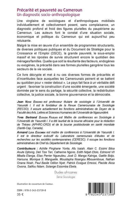 Une vingtaine de sociologues et d'anthropologues mobilisés individuellement et collectivement posent, sans complaisance, un diagnostic profond et froid des figures plurielles du paupérisme au Cameroun. Les auteurs font le constat d'une situation sociale, économique et politique du Cameroun qui est aujourd'hui peu reluisante. Malgré la mise en oeuvre d'un ensemble de programmes structurants, de diverses politiques publiques et du Document de Stratégie pour la Croissance et l'Emploi (DSCE), la grande pauvreté, le sous-emploi massif et les ripostes de survie structurent encore le quotidien des ménages/familles. Quelle que soit la résultante des facteurs, endogènes ou exogènes, la précarité dans ses formes plurielles gangrène tous les secteurs de la vie sociale. Ce livre décrypte et met à nu ces diverses formes de précarités et d'incertitudes face auxquelles les Camerounais peinent et se battent au quotidien pour « rester debout ».