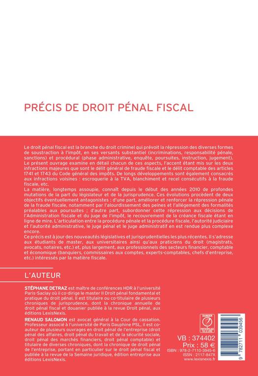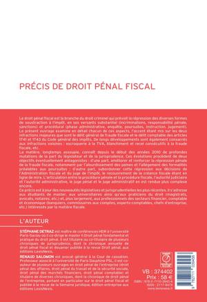 Une analyse des délits et des crimes en matière de fiscalité, comme l'escroquerie à la TVA et le recel de fraude fiscale. Les éléments de procédure, l'imputation des infractions, les modalités d'enquête et de poursuite, la nature et le cumul des sanctions sont expliqués.