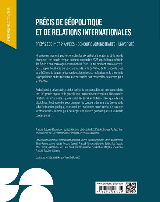 Rédigé par des universitaires et des cadres du secteur public, cet ouvrage explicite tant les grands enjeux de la géopolitique du monde contemporain, l’histoire des relations internationales que les plus récentes évolutions théoriques de ces disciplines. Il est essentiel pour préparer les concours des grandes écoles et de la haute fonction publique, pour conduire une licence ou un master de relations internationales, comme pour se forger une culture géopolitique sur le monde contemporain.