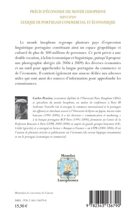 Le monde lusophone regroupe plusieurs pays d'expression linguistique portugaise constituant un espace géopolitique et culturel de plus de 300 millions de personnes. Ce petit précis a une double vocation, à la fois économique et linguistique, puisqu'il propose une photographie abrégée des diverses économies et un outil pour appréhender la langue portugaise du commerce et de l'économie. Il contient également une annexe dédiée aux adresses utiles qui sont aussi des sources d'information pour approfondir les connaissances.