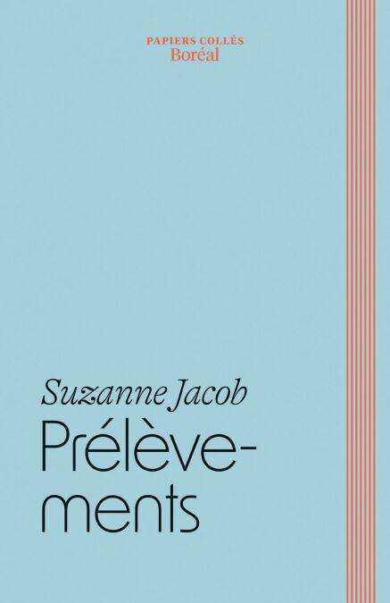 Les prélèvements sont comme des échantillons de mots, d’objets, de rêves ou de façons d’être qui font notre quotidien et nous définissent à la fois comme individus et comme sociétés. Suzanne Jacob les analyse avec son regard unique, prêtant son infatigable attention aux sens cachés du langage, aux malentendus, aux crimes impunis, mais aussi à la beauté et à l’humanité qui surgissent là où on ne le soupçonne pas. Mis bout à bout, ces prélèvements forment un recueil de courts essais percutants, qui portent sur les sujets les plus imprévisibles, tantôt ordinaires comme ces magazines qui traînent dans la salle d’attente de notre dentiste, tantôt poétiques comme l’image forte des lits superposés qui clôt le livre et devient la métaphore de toute culture digne de ce nom. De prélèvement en prélèvement, l’essayiste ne propose ni leçon ni morale, mais invite plutôt au plaisir de se laisser désorienter par les sinuosités de nos rivières et les méandres de nos pensées.