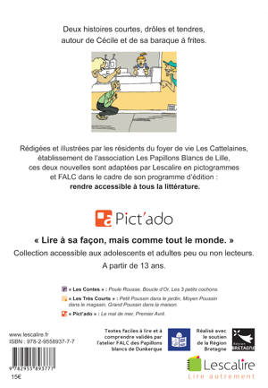 Rédigées et illustrées par les résidents du foyer de vie Les Cattelaines, établissement de l'association Les Papillons Blancs de Lille, ces deux nouvelles sont adaptées par Lescalire en pictogrammes et FALC dans le cadre de son programme d'édition ; rendre accessible à tous la littérature.