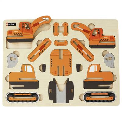 17 pièces en bois découpé et verni, à assembler selon le schéma de montage pour construire la pelleteuse. Cet encastrement original permet d'affiner la dextérité et d'initier à la lecture de schéma de montage. Des éléments en bois découpé et verni, à assembler selon le schéma de montage en quelques étapes, indiqué au dos du plateau. Les réalisations tiennent à la verticale...