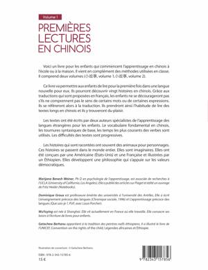 Ce livre, constitué de deux volumes, est destiné aux enfants qui commencent l'apprentissage du chinois à l'école ou à la maison. Ils y découvriront vingt histoires en chinois, avec des traductions en français auxquelles ils peuvent se référer. La difficulté des textes est progressive, ce sont les tournures syntaxiques de base et les temps les plus courants des verbes qui sont utilisés ici. Les enfants prennent ainsi l'habitude de lire des textes relativement longs en chinois et sans se décourager.