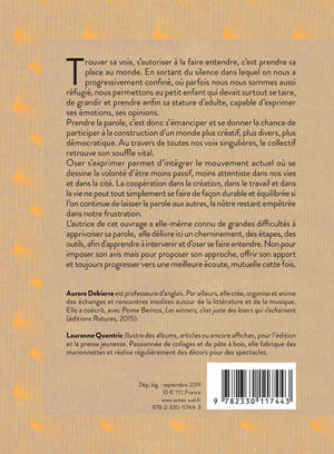 Trouver sa voix, s'autoriser à la faire entendre, c'est prendre sa place au monde. En sortant du silence dans lequel on nous a progressivement confiné, où parfois nous nous sommes aussi réfugiés, nous permettons au petit enfant qui devait surtout se taire, de grandir et prendre enfin sa stature d'adulte, capable d'exprimer ses émotions, ses opinions. L'auteur de cet ouvrage a elle-même connu de grandes difficultés à apprivoiser sa parole, elle délivre ici un cheminement, des étapes, des outils, afin d'apprendre à intervenir et d'oser se faire entendre. Non pour imposer son avis mais pour proposer son approche, offrir son apport et toujours progresser vers une meilleure écoute, mutuelle cette fois.