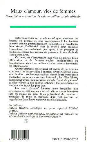 Différents écrits sur le sida en Afrique présentent les femmes comme particulièrement vulnérables à l'épidémie, et plus spécifiquement les femmes pauvres. A travers 119 entretiens de femmes, ce livre nuance fortement ces affirmations et présente de nombreux exemples de mise en pratique d'un réel pouvoir de négociation dans leurs rapports avec les hommes.