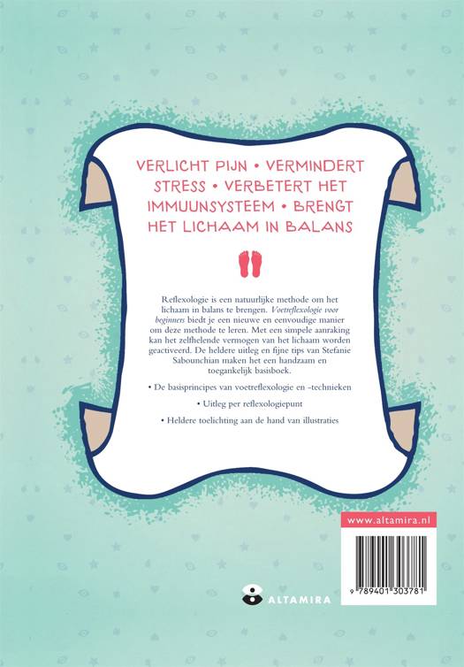 In de gids worden eerst heel praktisch de basisprincipes en technieken van de reflexologie uitgelegd. Daarbij wordt steeds één reflexpunt tegelijk behandeld en uitgelegd welke druktechnieken je kunt toepassen. Kleurcodes in de illustraties geven aan waar het punt zich op de voeten bevindt en met welk lichaamsdeel het correspondeert. 'Voetreflexologie voor beginners' is daarmee een handzaam basisboek om pijn te verlichten, stress te verminderen, het immuunsysteem te verbeteren en het lichaam in balans te brengen.