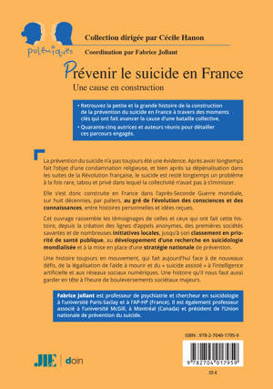 Cet ouvrage rassemble les témoignages de celles et ceux qui ont fait cette histoire, depuis la création des lignes d’appels anonymes, des premières sociétés savantes et de nombreuses initiatives locales, jusqu’à son classement en priorité de santé publique, au développement d’une recherche en suicidologie mondialisée et à la mise en place d’une stratégie nationale de prévention.