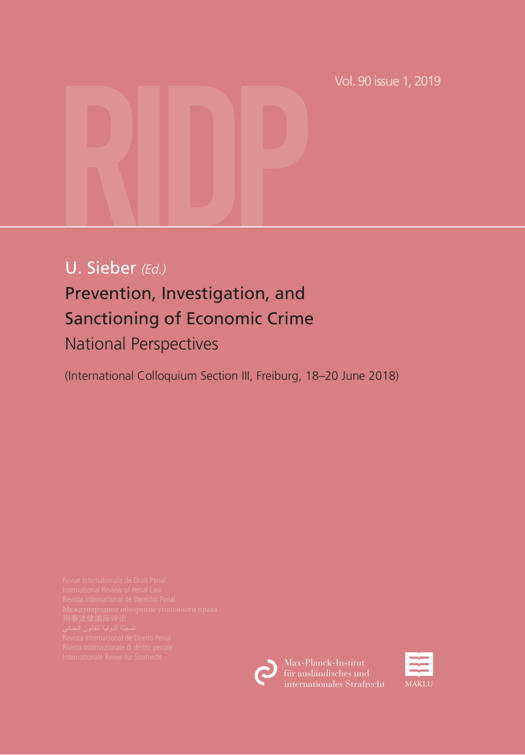 This issue is part of the fourth milestone on the way to the 20th AIDP World Congress dedicated to ‘Criminal Justice and Corporate Business’. It contains an introduction and a selection of national reports for the International Colloquium for Section III on ‘Prevention, Investigation, and Sanctioning of Economic Crime’, organized by the Max Planck Institute for Foreign and International Criminal Law in Freiburg from 18 to 20 June 2018. The present issue is published simultaneously with issue 2 of Volume 90, featuring the additional colloquium reports on alternative regimes for controlling economic crime and the limits of human rights protection. The publication of the general report and the recommendations of the colloquium will follow. The background of the Freiburg colloquium was the evolution towards a new architecture for economic crime control, in which criminal law is increasingly amended and affected by alternative prevention, investigation, and sanctioning regimes (such as administrative criminal law, civil asset forfeiture, and private compliance regimes). The colloquium has analysed, compared, and evaluated such alternative control regimes, focusing on their practicability and their human rights safeguards, in view of developing recommendations for an improved comprehensive economic crime policy. The multi-level comparative methodological approach underlying the colloquium consisted of a comparison of a wide range of national and international legal orders and a functional comparison of the different criminal and alternative legal regimes within and across these legal orders.