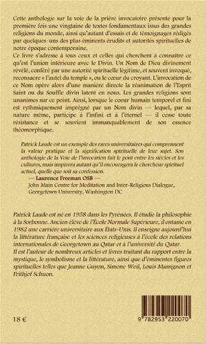 Cette anthologie sur la voie de la prière invocatoire présente pour la première fois une vingtaine de textes fondamentaux issus des grandes religions du monde, ainsi qu’autant d’essais et de témoignages rédigés par quelques–uns des plus éminents érudits et autorités spirituelles de notre époque contemporaine. Ce livre s’adresse à tous ceux et celles qui cherchent à connaître ce qu’est l’union intérieure avec le Divin. Un Nom de Dieu divinement révélé, conféré par une autorité spirituelle légitime, et souvent invoqué, reconsacre « l’autel du temple », ou le cœur du croyant. L’invocation de ce Nom opère alors d’une manière directe la réanimation de l’Esprit Saint ou du Souffle divin latent en nous. Les grandes religions sont unanimes sur ce point. Ainsi, lorsque le coeur humain temporel et fini est rythmiquement imprégné par un Nom divin — lequel, par sa nature même, participe à l’infini et à l’éternel — il cesse toute résistance et se souvient immanquablement de son essence théomorphique.