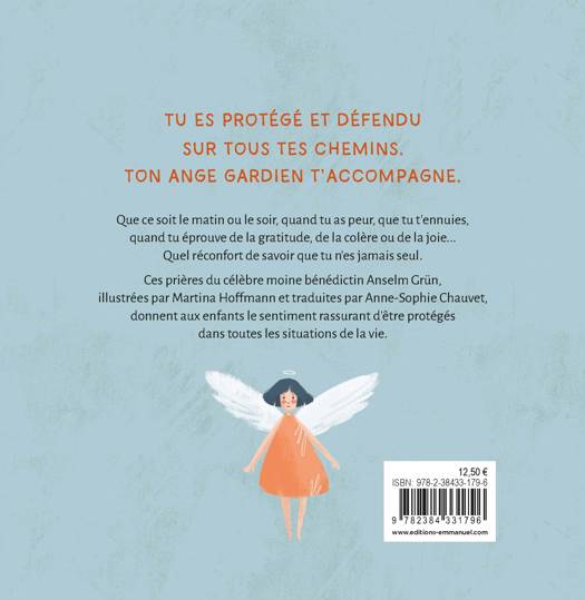 Tu es protégé et défendu sur tous tes chemins. Ton ange gardien t’accompagne. Que ce soit le matin ou le soir, quand tu as peur, que tu t'ennuies, quand tu éprouve de la gratitude, de la colère ou de la joie... Quel réconfort de savoir que tu n'es jamais seul. Ces prières du célèbre moine bénédictin Anselm Grün, illustrées par Martina Hoffmann et traduites par Anne-Sophie Chauvet, donnent aux enfants le sentiment rassurant d'être protégés dans toutes les situations de la vie.