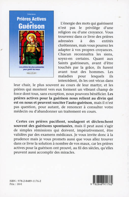 L'énergie des mots qui guérissent n'est pas le privilège d'une religion ou d'une croyance. Vous trouverez dans ce livre des prières adressées à des entités chrétiennes, mais vous pourrez les adapter à vos propres croyances. Chacun reconnaîtra les siens, soyez-en certains. Quant aux Saints guérisseurs, avant d'être touchés par la grâce, ils furent avant tout des hommes. Les maladies pour lesquels ils intercèdent, ils les ont vécus dans leur chair, le plus souvent au cours de leur martyr, et les prières qui montent vers eux forment un vibrant champ de force dont tous, sans exception, nous pouvons bénéficier. Les prières actives pour la guérison nous relient au divin qui est en nous et peuvent susciter l'auto-guérison, mais il n'est pas question, pour autant, de renoncer à consulter votre médecin ou d'abandonner un traitement en cours. Certes ces prières pacifient, soulagent et déclenchent souvent des guérisons spontanées, mais il peut aussi s'agir de simples rémissions qui doivent, impérativement, être validées par des examens médicaux. Je vous invite donc à la prudence mais je vous promets aussi que vous allez trouver dans ce livre la solution à nombre de vos maux, car les prières actives pour la guérison ont prouvé, au fil des siècles, qu'elles peuvent aussi accomplir des miracles.