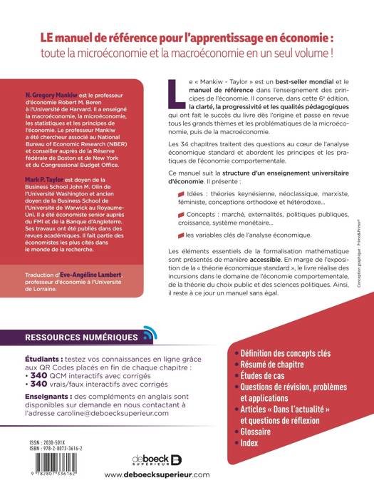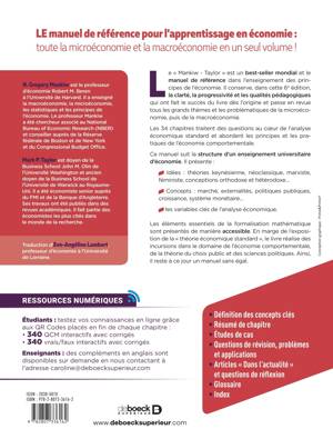 Le « Mankiw - Taylor » est un best-seller mondial et le manuel de référence dans l’enseignement des principes de l’économie. Il conserve, dans cette 6e édition, la clarté, la progressivité et les qualités pédagogiques qui ont fait le succès du livre dès l’origine et passe en revue tous les grands thèmes et les problématiques de la microéconomie, puis de la macroéconomie.