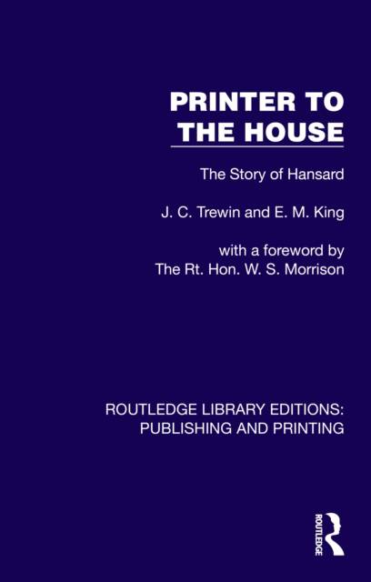 Everyone knows the name of Hansard, the famous record of Parliamentary proceedings. Very few people know how it began. First published in 1952, here was for the first time, the authoritative history of the Hansard family and of its work, for nearly 100 years, as Parliamentary printers in charge of the Journals of the House of Commons.
