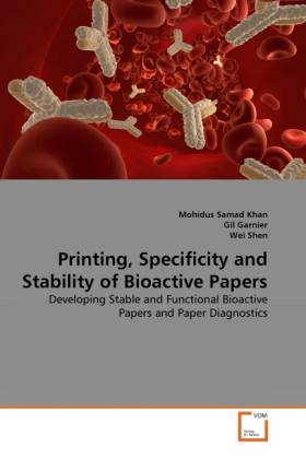 The fundamental and applied engineering issues to develop stable and functional bioactive papers for health and environmental diagnostics are investigated. Enzymes are directly physisorbed on paper or retained on paper with a polymer. The reactivity and the thermal stability of enzymatic papers are quantified using an advanced colorimetric technique. Paper bioassays to identify antigens and antibodies in a biofluid, such as blood, are investigated. The blood typing using a low cost paper diagnostic is shown. The feasibility of thermal ink jet printing is illustrated for the precise deposition of biomolecules on paper and polymers. Microfluidic channels are also printed on paper to demonstrate the concept of paper diagnostic devices. Liquid- liquid and solid-liquid interactions that involve ink jet printing of biomolecules onto paper are quantified and modelled. This study validates paper as a bioactive support. The ink jet printing is shown as a convenient technique which can be scaled up for diagnostic and industrial applications.