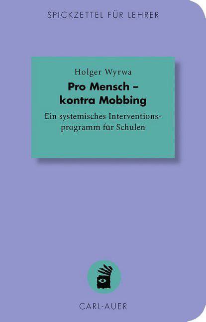 Nicht von ungefähr ist heute viel von Mobbing die Rede, auch an Schulen. Man spricht von einer halben Million Fälle dieser Form der psychischen Gewalt alleine an deutschen Schulen.Holger Wyrwa geht mit dem fundierten Programm "Pro Mensch - kontra Mobbing" einen neuen Weg. Es nimmt die Wegseher und Unterstützer in den Blick, mit dem Ziel, den aktiven Mobbern die Aufmerksamkeit und das Publikum zu entziehen. In der Praxis kann sich das als sehr effektiv erweisen und schnell zu Veränderungen führen.Mit einem Methodenset aus Gruppendynamik, zirkulären Fragen, Rollenspiel und Skulpturierung werden die Schüler angeregt, ein neues System aufzubauen. Statt an Ausgrenzung orientiert es sich an Rücksichtnahme, Solidarität und Zivilcourage.Lehrkräften und anderen Pädagogen hilft das Programm, Mobbing vorzubeugen, im Mobbingfall zielgerichtet zu intervenieren und Gemobbte nachhaltig zu unterstützen.