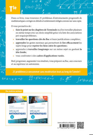Dans ce livre, vous trouverez 25 problèmes d’entraînements progressifs de mathématiques corrigés en détails et entièrement rédigés comme sur une copie. Il vous permettra de :