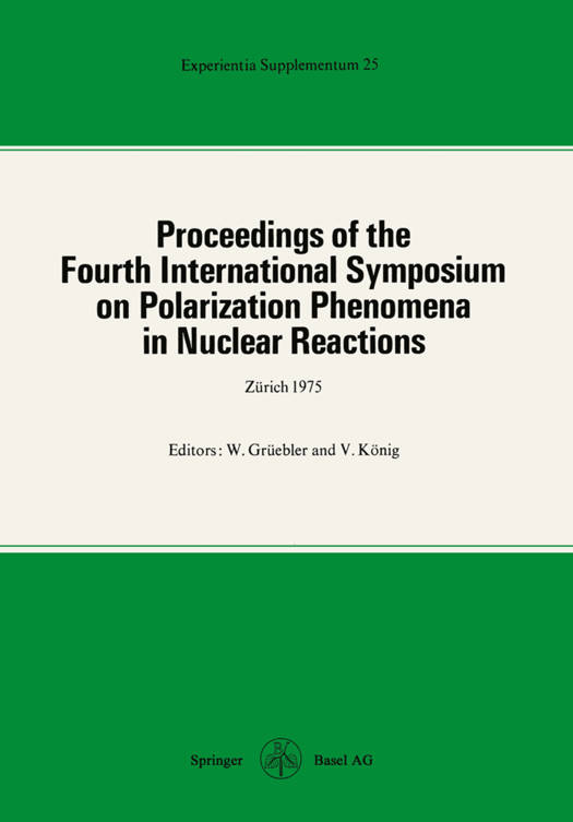 The Fourth International Symposium on Polarization Phenomena in Nuclear Reactions took place from August 25 to 29, 1975, at the Swiss Federal Instituteof Technology in Zurich (ETHZ). Apart from the host institution the Symposium was also supported by the International Union of Pure and Applied Physics, the Swiss National Science Founda tion and the Swiss Physical Society. The program of the Symposium was set up with the advice of an International Program Committee with the following members: Prof. I. Ja. Barit, USSR Academy of Sciences, Moscow, USSR Prof. E. Baumgartner, University of Basel, Basel, Switzerland Prof. H. E. Conzett, Lawrence Berkeley Laboratory, Berkeley, USA Dr. W. Gruebler, Laboratorium fUr Kernphysik, ETH Zurich Prof. W. Haeberli, University of Wisconsin, Madison, USA Prof. S. S. Hanna, Stanford University, Stanford, USA Prof. J. McKee, University of Manitoba, Winnipeg, Canada Prof. G. C. Morrison, University of Birmingham, England Dr. G. G. Ohlsen, LASL, Las Alamos, USA Prof. J. Raynal, C. E. N. Saclay, France Dr. M. Simonius, Laboratorium fUr Kernphysik, ETH Zurich The Local Organizing Committee consisted of Dr. R. Balzer Dr. W. Grtiebler Dr. H. Jung Dr. V. Konig Prof. J. Lang Dr. M. Simonius Prof. W. G. Weitkamp (on leave from University of Washington, Seattle) It was generally felt that the Fourth Polarization Symposium should emphasize the importance of polarization measurements in the different fields of nuclear physics and explain the physical content of polariza tion phenomena."