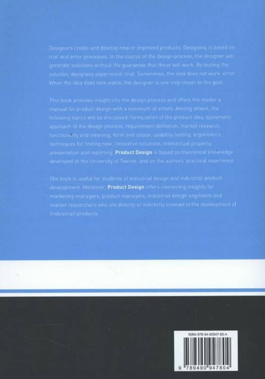 Designers solve problems. Ideas and problems change, however, and new techniques and materials are invented, new production methods are developed. Designing is a process of trial and error. During the development process, designers will think up solutions or part solutions for the problems that they have been presented with. They do not know if this solution will work. Therefore, they will try out their solution, for instance using a test model or a scale model: trial. Sometimes, the solution will prove not to work: error. Sometimes the solution will work, and in that case the designer had brought his result one step closer. This book gives insight into the designprocess and provides a manual for product design with as less errors as possible. A few of the described phases are: formulating the product idea, systematic approach of the design process, market research, the (technical) concept and ergonomics.